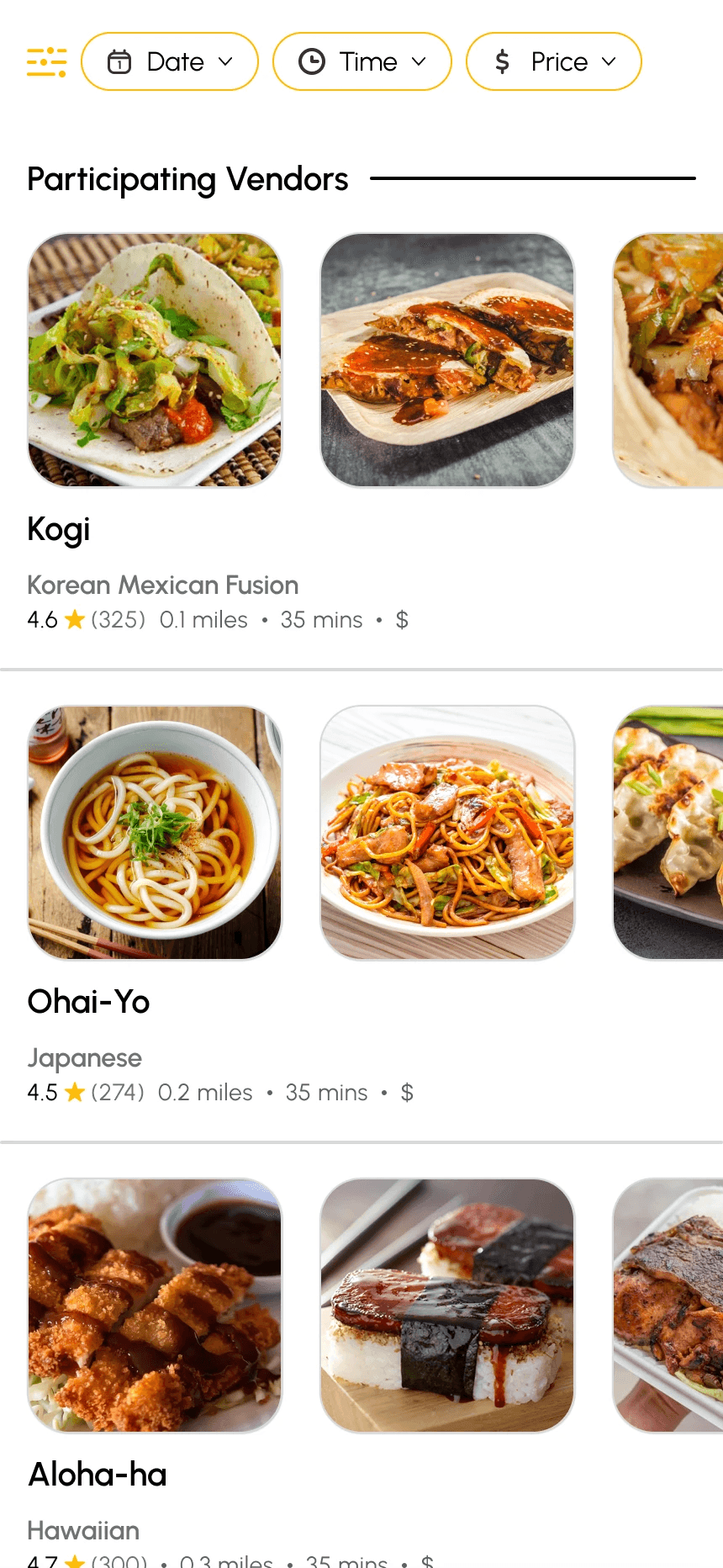 Vendor cards were cleaned up by improving the text hierarchy and only providing the most essential information for a quick browse.