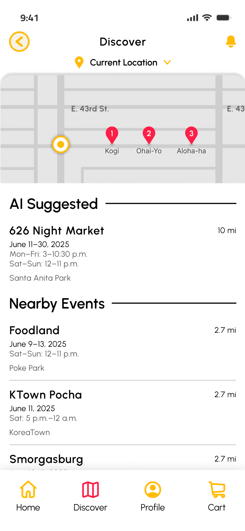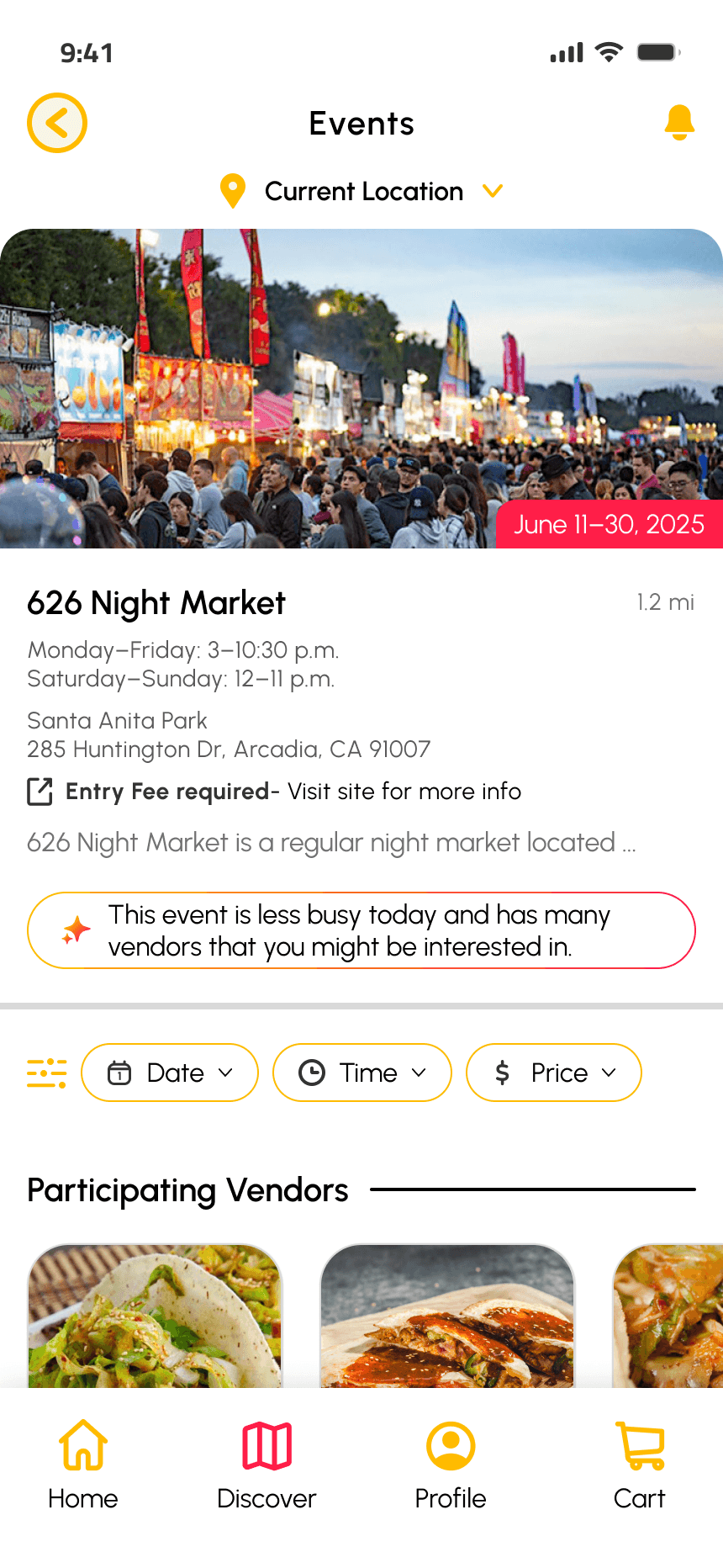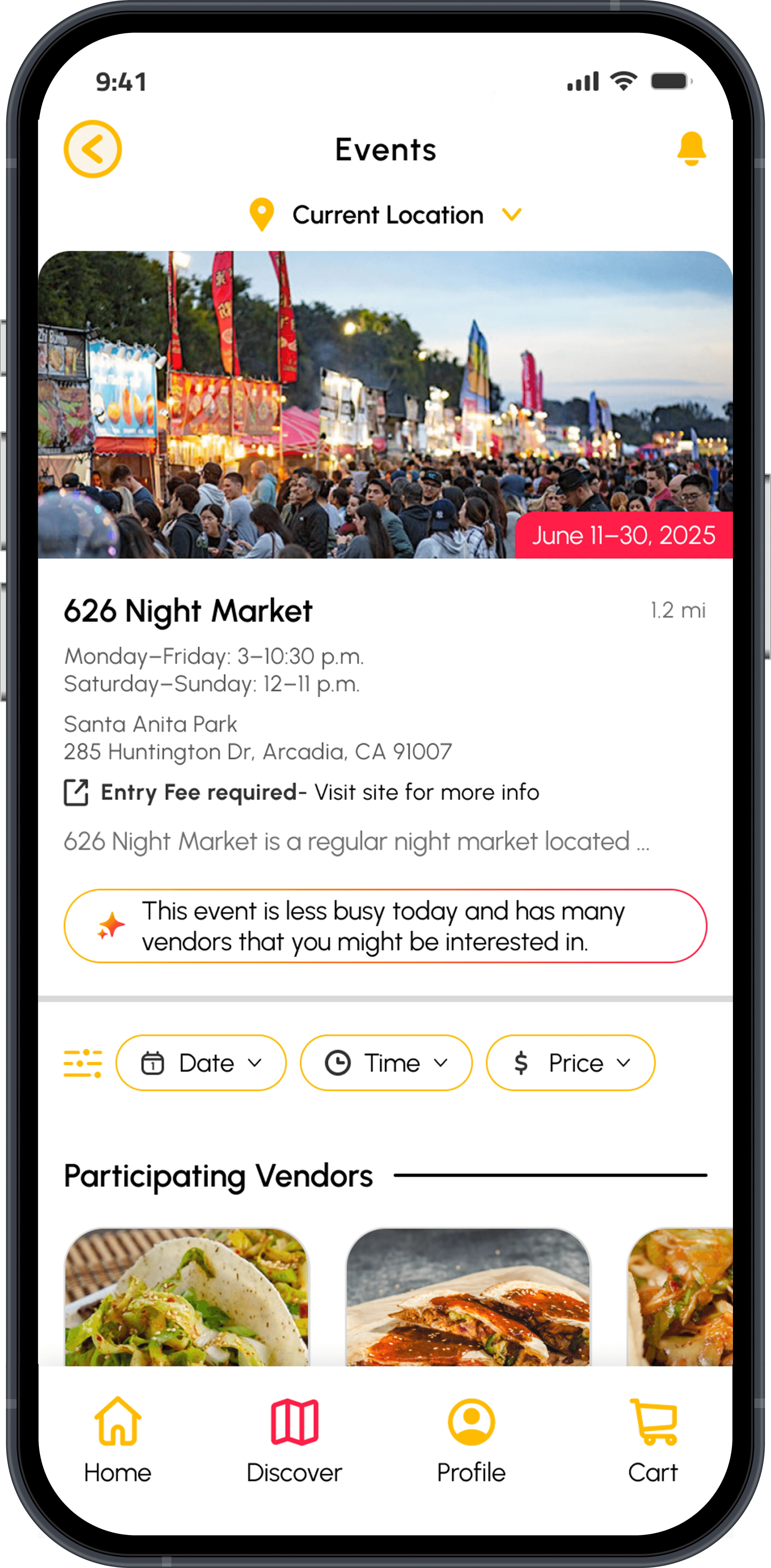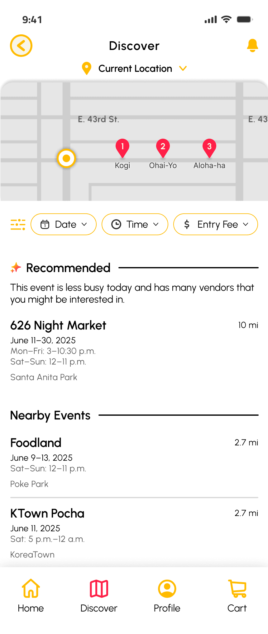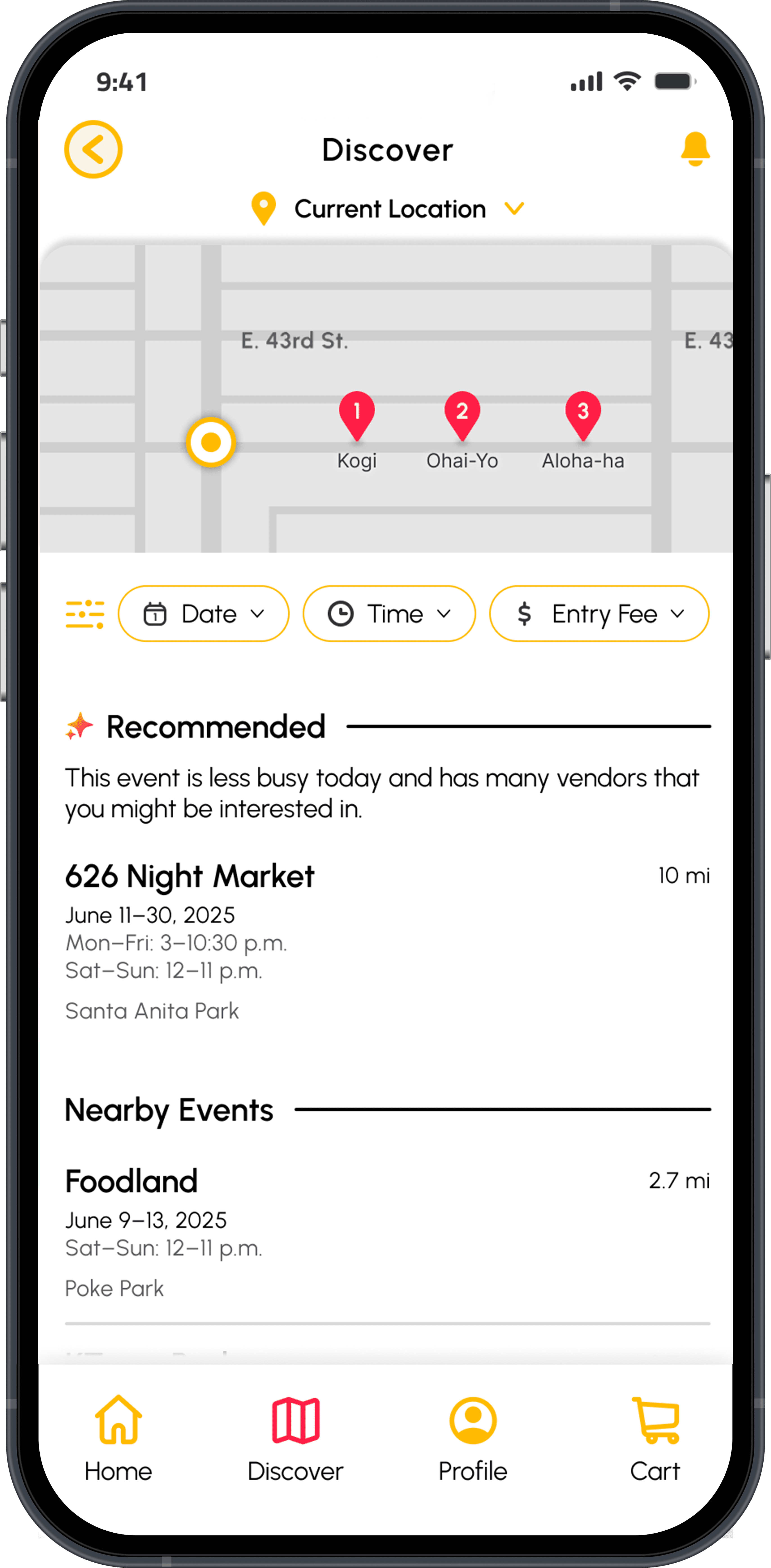 After multiple rounds of usability testing, these final designs solved the event and vendor visibility problem by giving users a clear way to discover.
