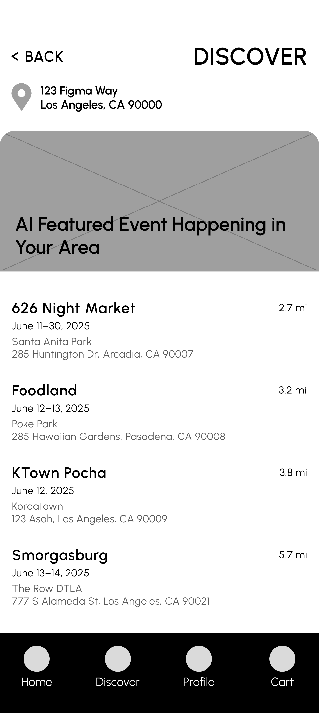 The initial low-fi wireframes focused on helping users quickly see nearby events. The goal here was to ensure that the user flow was straightforward and easy to navigate.
